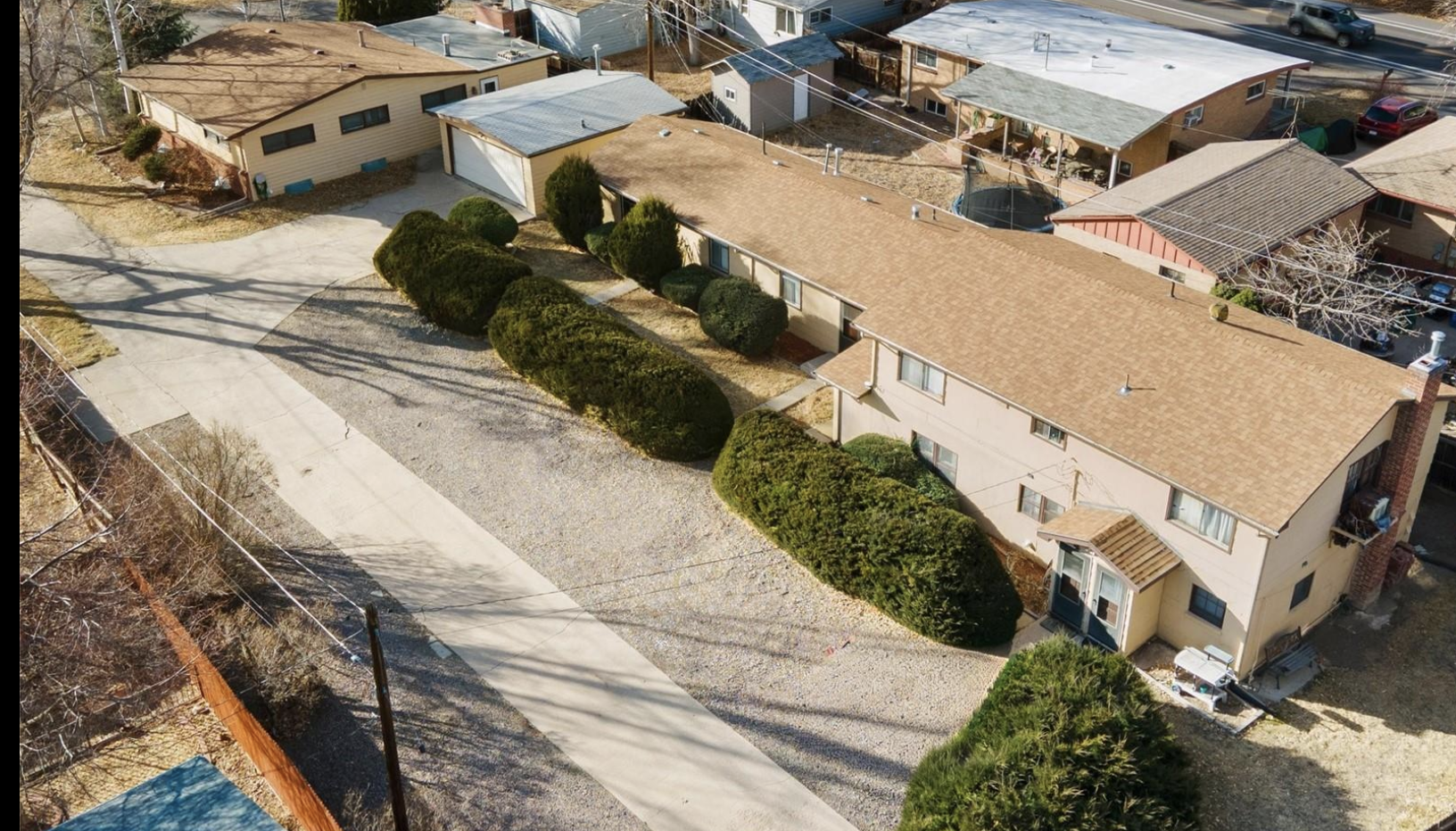 Really unique property with 5 units. A single family home with a detached 2 car garage and a separate four-wplex with 8+ parking spaces. All units are now vacant.